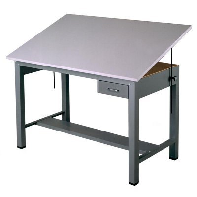 What We Like About the Economy Ranger II Drafting TableEnhance your office or work space with the durability of this drafting table. Built of solid steel, its frame will last for years. The adjustable work surface is made with a thermally fused melamine that is scratch-resistant. Adjust the table top from a horizontal position up to 50 degrees to work at just the right angle. Keep tools handy and organized in the included tool drawer. This Mayline drafting table is one of the sturdiest you will find.