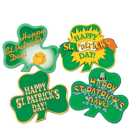 Packaged St Patrick's Day Shamrock Cutouts. Printed on 2 sides. Size: 16''''. 4 per package. Made in USA.'' Case Pack 60 Please note: If there is a color/size/type option, the option closest to the image will be shipped (Or you may receive a random color/size/type).